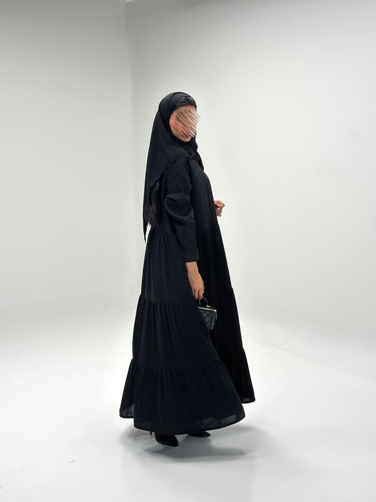 القماش : كريب كوري مع أكمام بقماش حرير ياباني