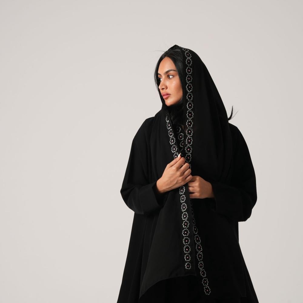 عبايه تطريز يدوي بقماش كريب سراميك .