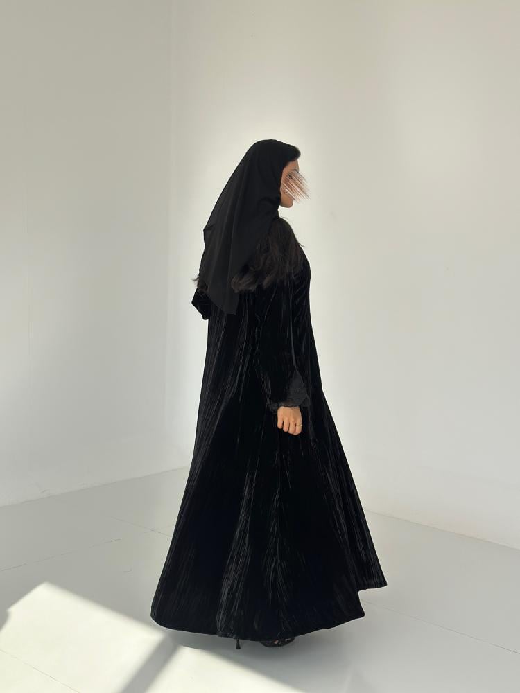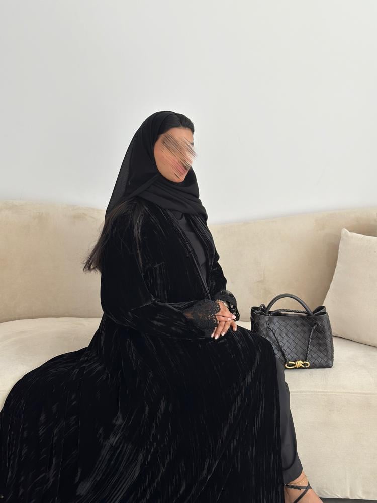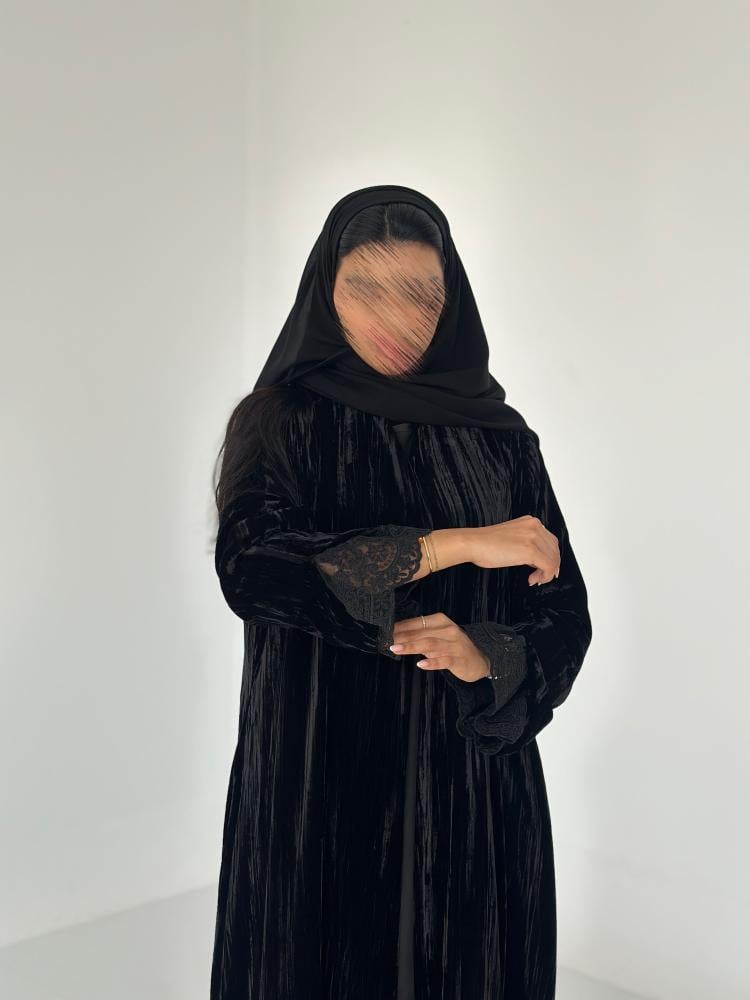 القماش : مخمل مكسر . اطراف الكم : دانتيل